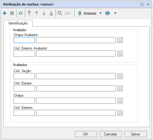 - Data início/Data fim: campos que controlam a data de início/fim da meta. Deve-se atentar ao preenchimento pois se a data fim for menor que a data de acesso do avaliador no Totvs Portal, a meta não é visualizada;