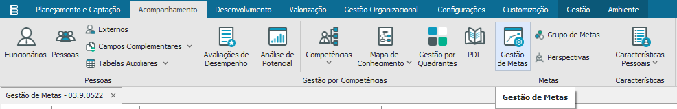 A Gestão de Metas tem como objetivo definir os requisitos (metas) a serem cumpridos pelos funcionários para se chegar ao desenvolvimento individual ou atendimento aos requisitos de acesso do cargo. Ela é utilizada no PDI e nos Requisitos de Acesso