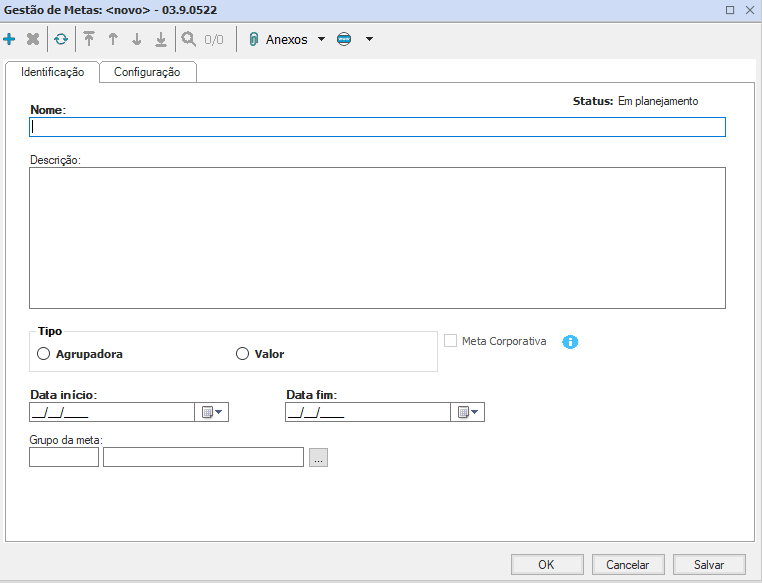 - Grupo da meta: campo que define em qual grupo as metas serão vinculadas (não é obrigatório);