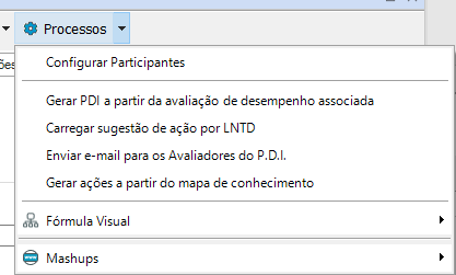 Ao finalizar o processo de cadastro do PDI é possível enviar e-mail para os avaliadores do PDI e gerar ações a partir do mapa de conhecimento na opção “Processos”
