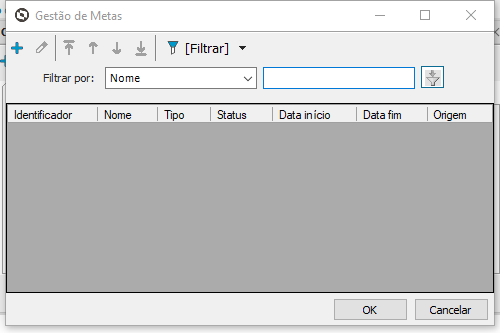 Na mesma tela de filtrar as metas, pode ser criada uma nova meta clicando no ícone “incluir”