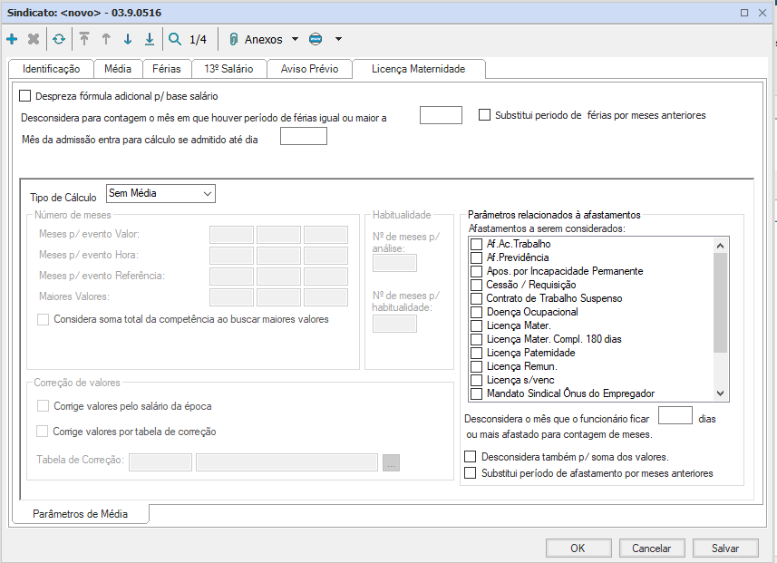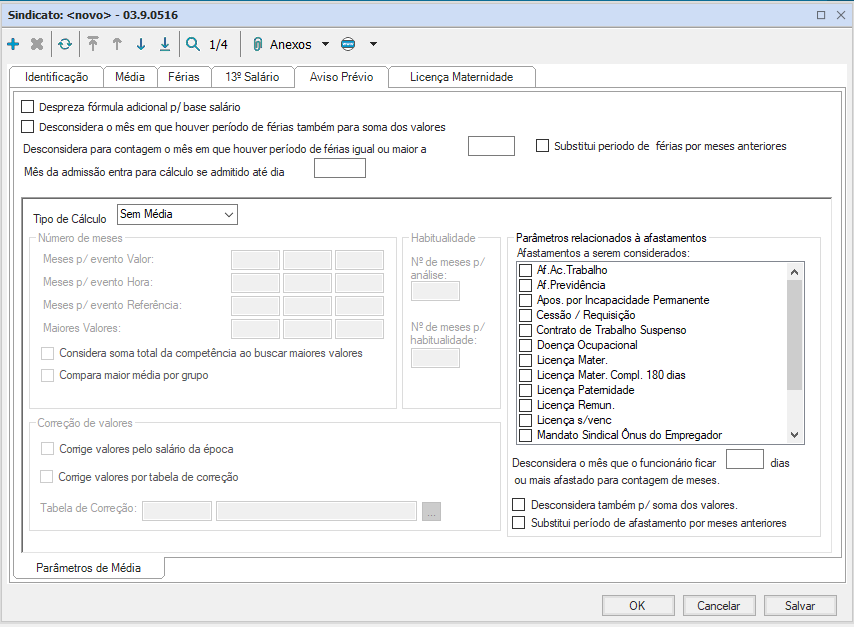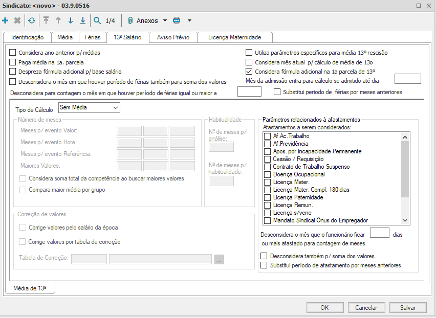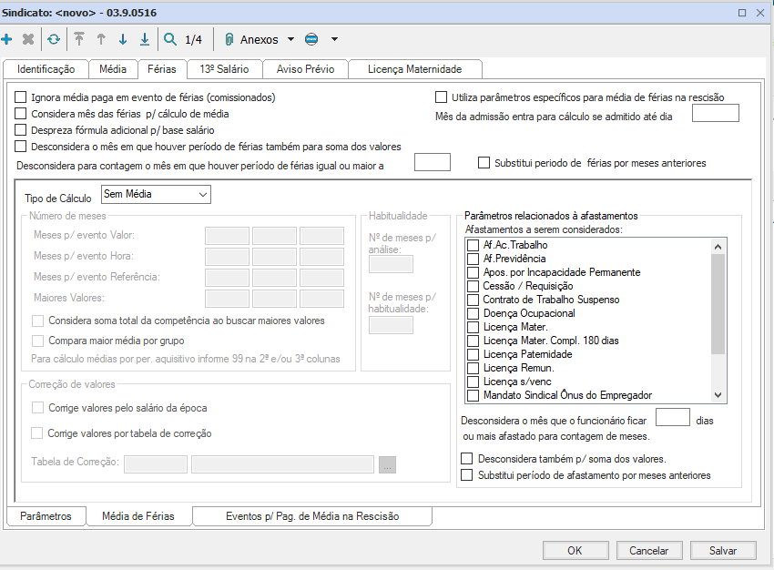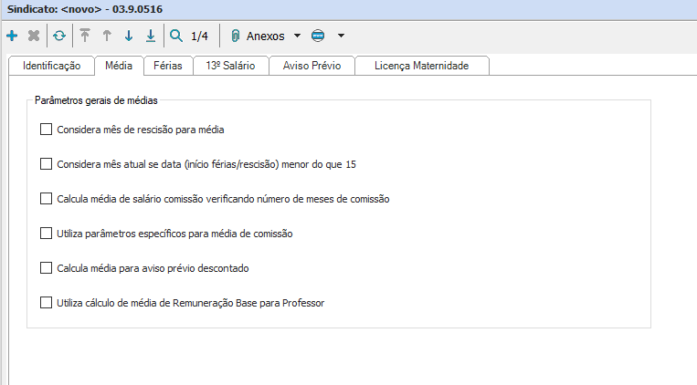 Na aba “Média”, é necessário que seja habilitado os campos que serão utilizados de acordo com o sindicato