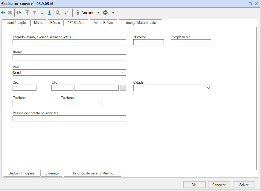 Na aba “Endereço” localizada na parte inferior da tela de cadastro, preencha as informações referentes ao endereço do sindicato que está sendo cadastrado e clique em “Salvar”