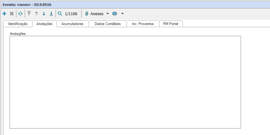 2- Aba “Anotações”, utilizada para realizar anotações sobre o evento que está sendo cadastrado