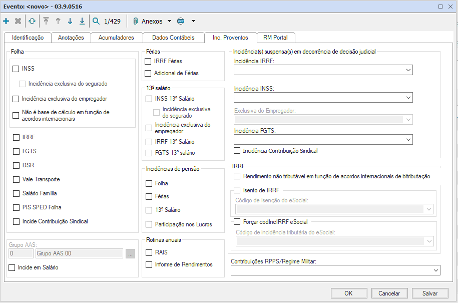 Prov/Desc/Base: habilitar o campo referente ao evento que está sendo criado;
