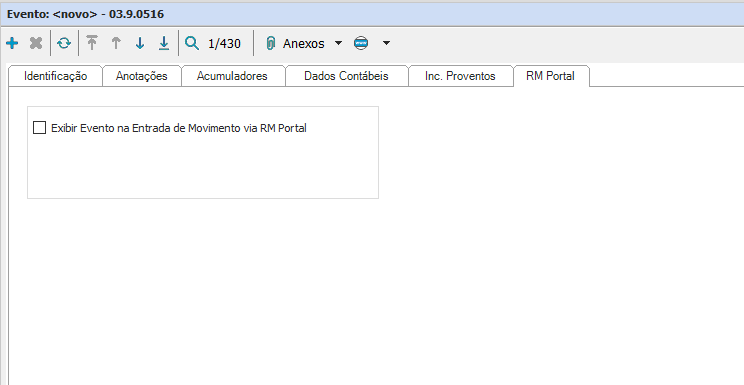6- Aba “RM Portal” Permite que apareça esse evento na entrada de movimento via RM Portal