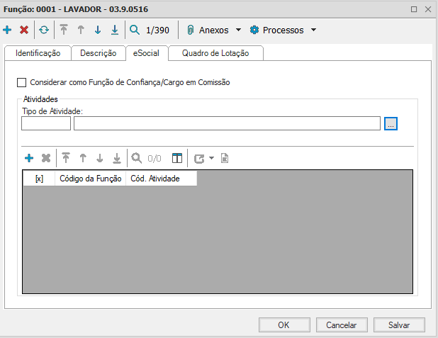 O tipo de atividade não é de preenchimento obrigatório. Só é preenchido em caso de cargo de confiança ou com risco ou periculosidade. Após realizar todas as etapas anteriores clique em “Salvar”.