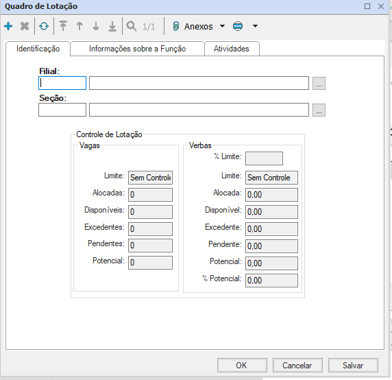 Preencha as informações (Filial e Seção) de acordo com a função e clique em “OK” para concluir o cadastro