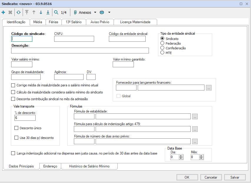 Valor Salário Mínimo: O valor mínimo definido pelo sindicato para a categoria;