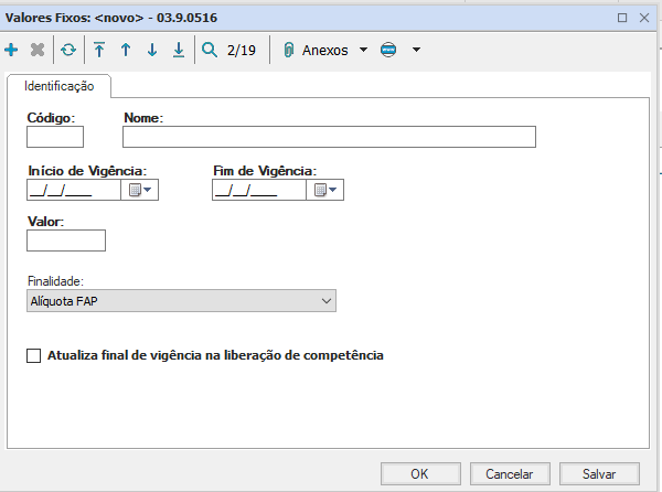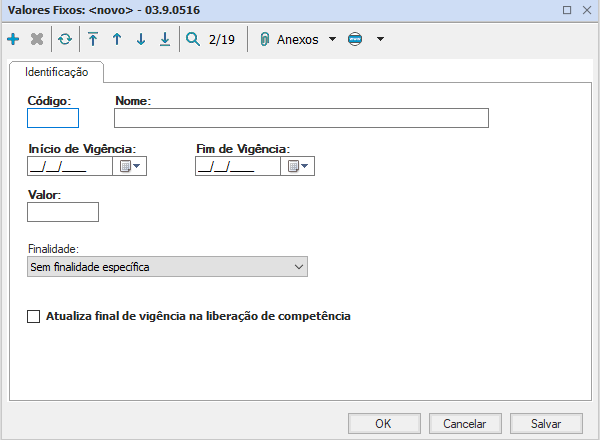 Fim de Vigência: informe o fim da vigência do Valor Fixo;