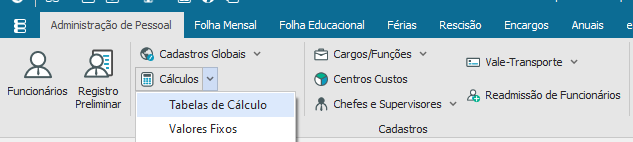 Os cadastros fazem parte do “Módulo RH- Folha de Pagamento” aba “Administração de Pessoal”