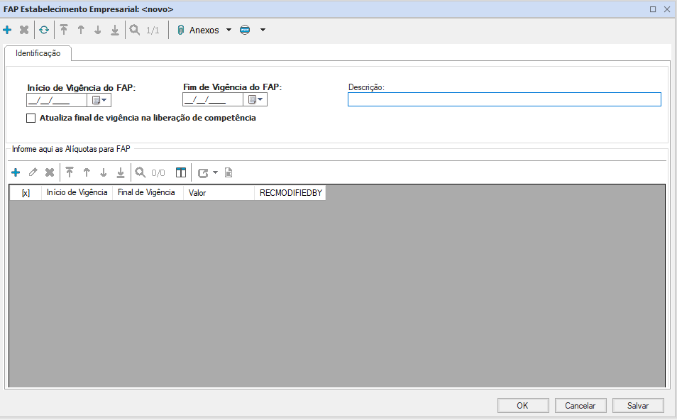 Observação: Quando o cadastro do FAP foi feito através do cadastro de “Valores Fixos”, não terá a separação por filial. Esse cadastro vai valer para toda a empresa