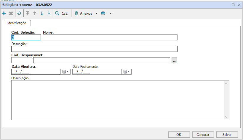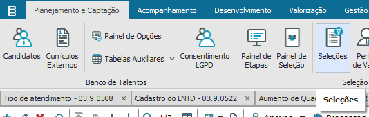 Esse cadastro é realizado pelo seguinte caminho do sistema: RH > Gestão de Pessoas > Planejamento e Captação> Seleções.