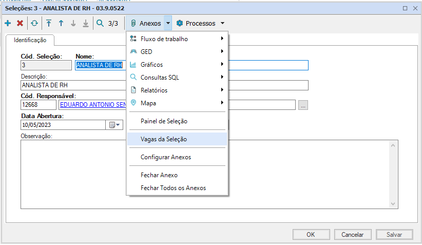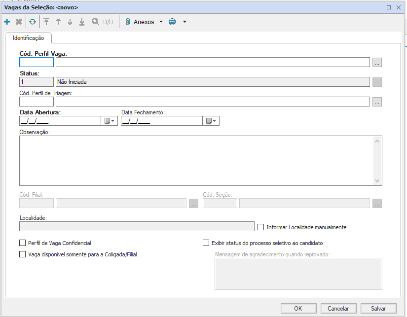 Data de Abertura: Determina a partir de que data a vaga fica disponível no banco de talentos;