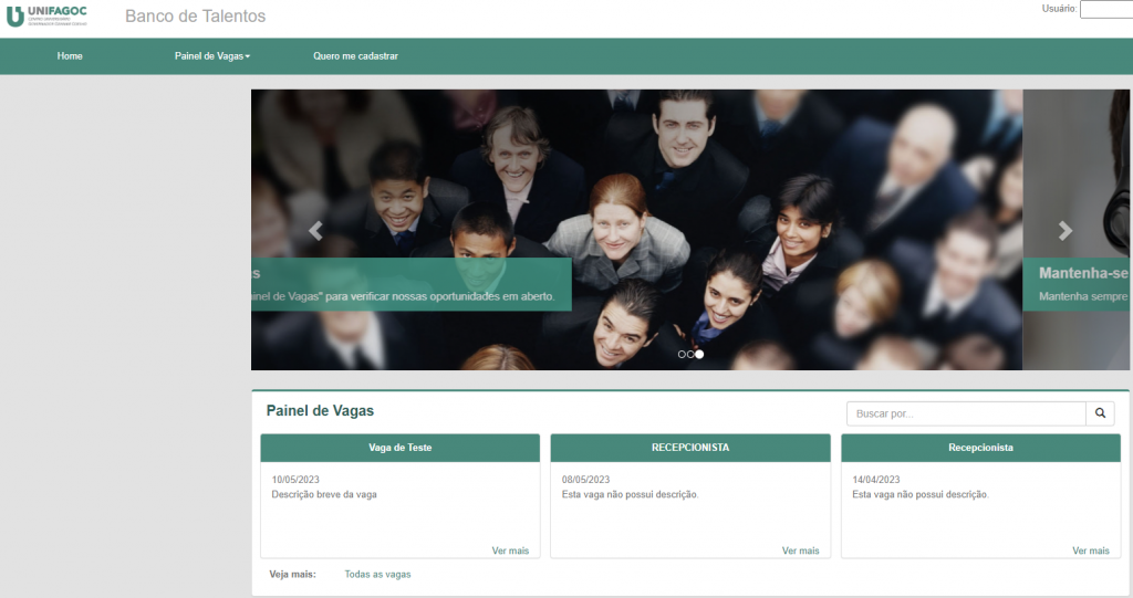 Ao final dos cadastros, a vaga passa a ficar disponível no Banco de Talentos do Unifagoc: