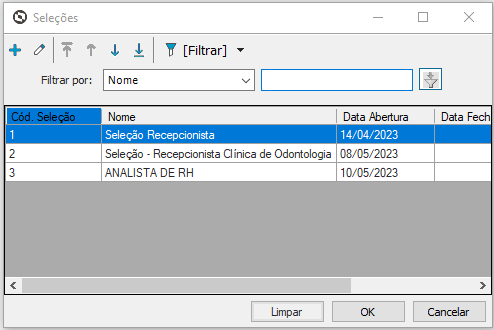 As instruções para o cadastro de Seleções podem ser encontradas no artigo “Totvs Recursos Humanos- Cadastro de Seleções”