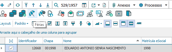 O cadastro de Férias está localizado no Módulo RH> Folha de Pagamento > Funcionários > Férias