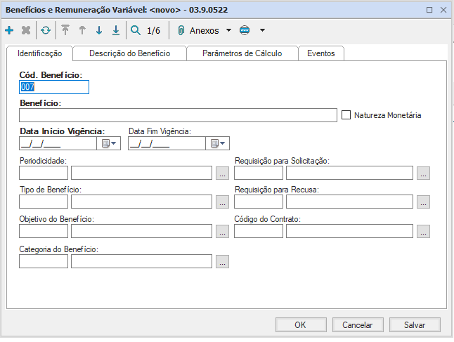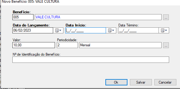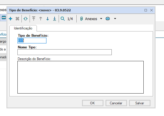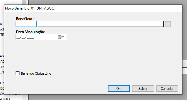 Tipo de Benefício: vincule um tipo de benefício previamente cadastrado;