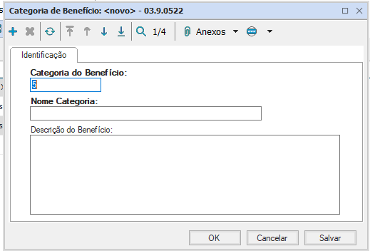 Categoria do Benefício: o sistema gera automaticamente o código;