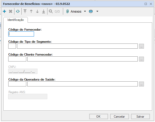 É o cadastro onde é armazenado os dados dos fornecedores de benefícios, o cadastro ainda realiza a vinculação com os cadastros de Cliente/Fornecedor (gestão financeira) e Operadora de Saúde (departamento pessoal).