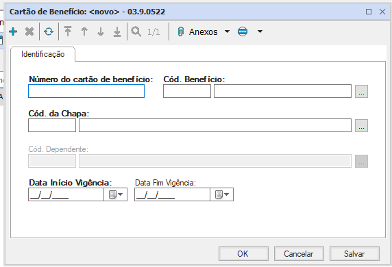Número do Cartão de Benefício: informe o número do cartão de benefício do funcionário;