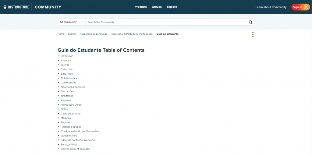 Acesse o Canvas Community (Aluno) para acessar artigos e conteúdos disponibilizados para você.