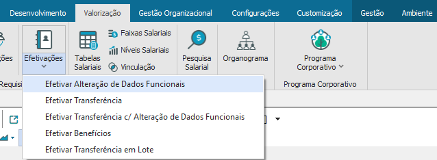 Após a aprovação da requisição é possível visualizar e editar os campos para realizar a efetivação dos dados na opção “Efetivações- Efetivar Alteração de Dados Funcionais”