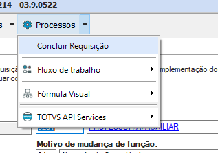 Após concluir as alterações dos dados, é necessário realizar o processo de conclusão da requisição. Para isso, clique na opção “Processos- Concluir Requisição”