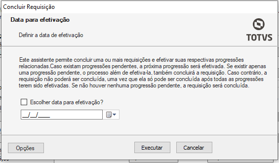 Em seguida, escolha a data da efetivação das alterações e execute o processo