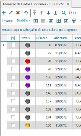 As cores do status das requisições são alterados de acordo com a etapa que a requisição se encontra