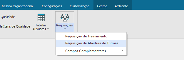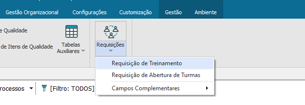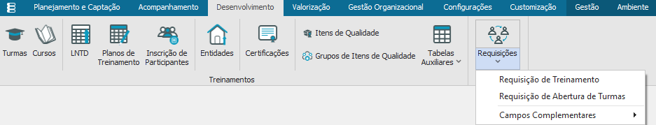 A Requisição de Treinamento tem como objetivo solicitar a inscrição de funcionários em cursos internos ou ministrados por terceiros.