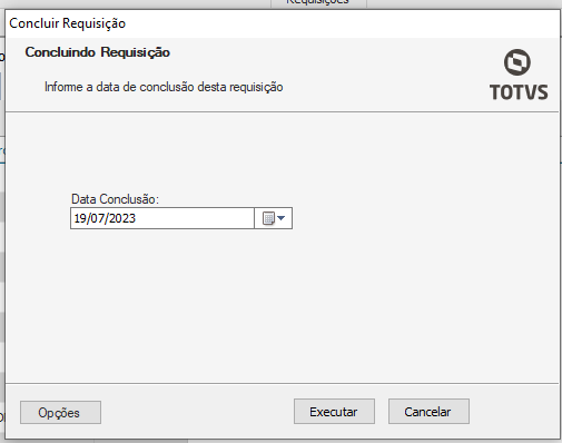 Ao selecionar essa opção, informe a data de conclusão do treinamento e execute o processo de conclusão da requisição
