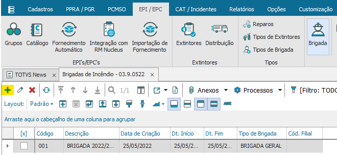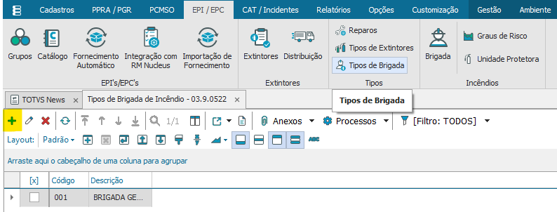Acesse a aba “EPI/EPC” opção “Brigada”