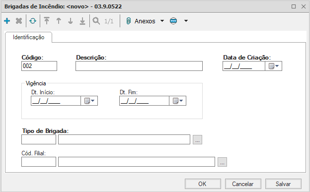 O Cadastro de Brigada de Incêndio tem como objetivo classificar as brigadas de incêndio existentes conforme as normas regulamentadoras