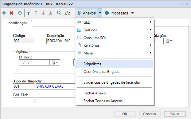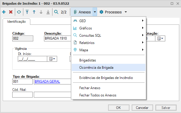 Tipo de Brigada: selecione a brigada cadastrada previamente;