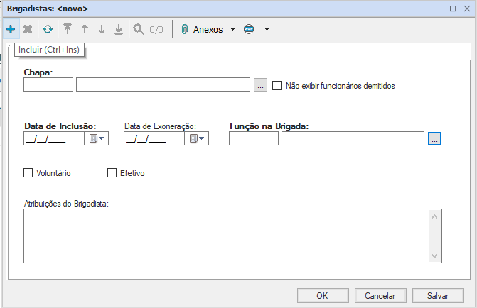 Atribuições do Brigadista: campo de preenchimento opcional;