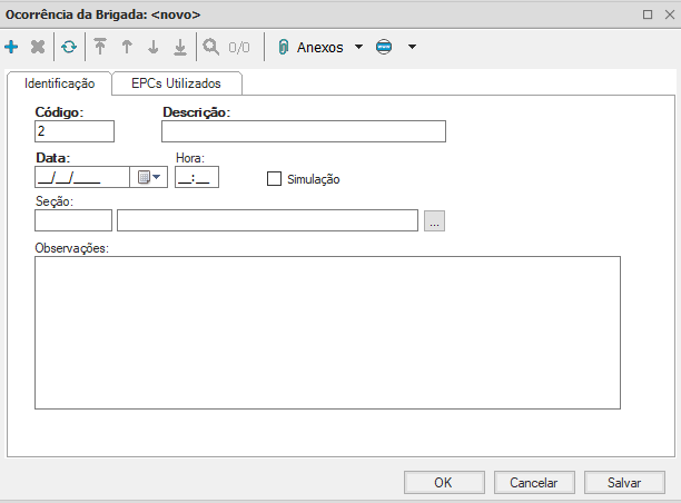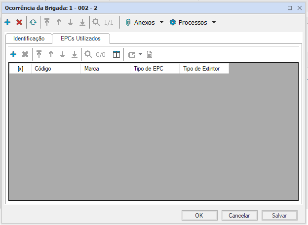 Observação: Preencher a aba “EPCs Utilizados” somente quando for necessário utilizar o extintor