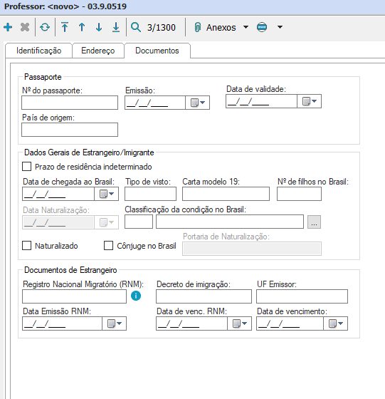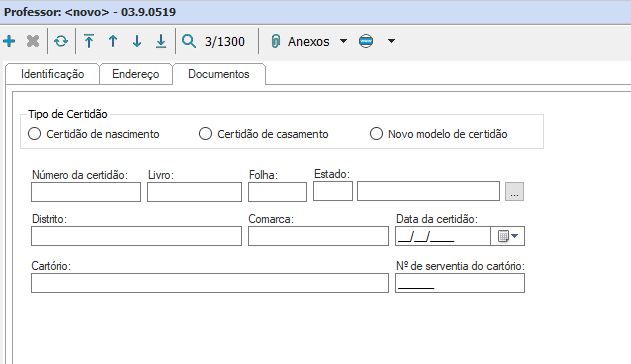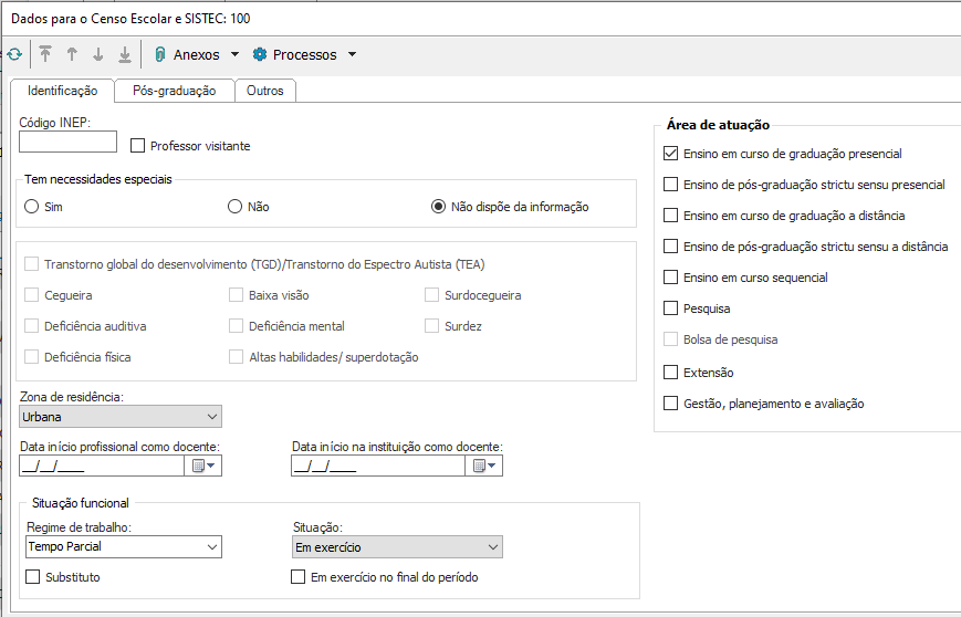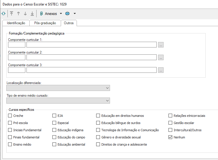 Depois de preencher as informações que constam nas respectivas abas do cadastro de professor, é preciso preencher algumas informações que são encontradas nos “Anexos”