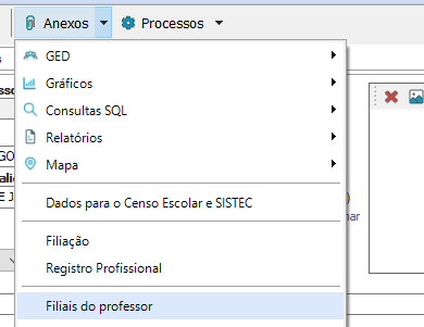 Para efetuar o processo selecione “Anexos- Filiais do Professor”