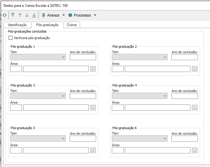Em seguida, escolha a aba “Pós-graduação” e preencha as informações referente a pós-graduação do professor