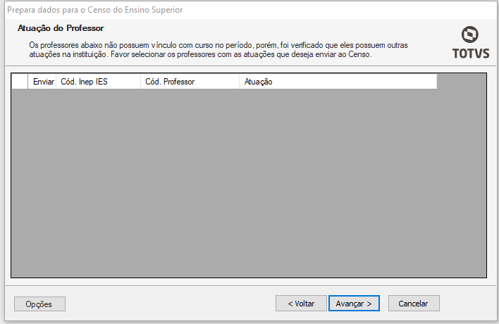 Clique em “avançar” e realize o vínculo dos professores com curso no período