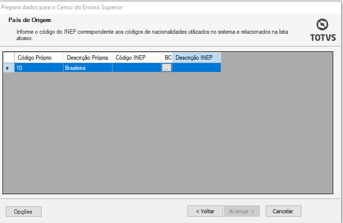 É de responsabilidade da Instituição de ensino o envio das informações do Censo solicitadas pelo Inep. Pela Totvs, esse processo é realizado através do preparo de um arquivo para envio das informações. Esse arquivo é composto por informações de uma série de cadastros com informações da Instituição, dos alunos, dos professores e do curso. O processo se inicia pela conferência e preenchimento dos cadastros da Instituição e Censo.