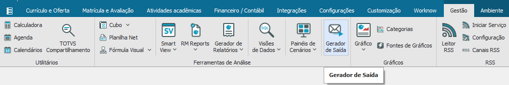 Pra realizar a exportação dos arquivos do censo, selecione na aba “Gestão” a opção “Gerador de Saídas”