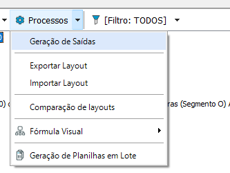 Em seguida, selecione os arquivos desejados e clique em “Processos- Geração de Saídas”