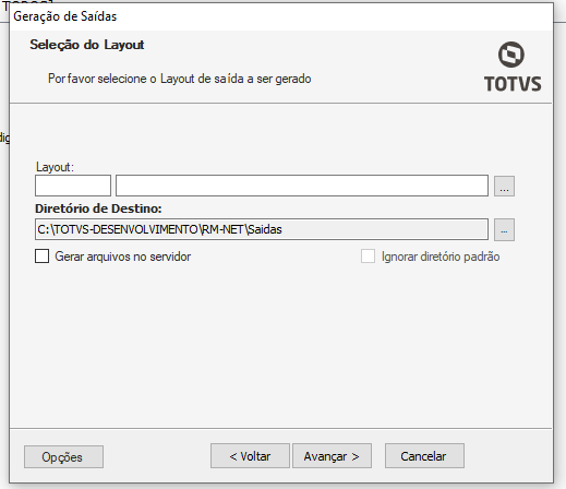Logo após, selecione o layout que você deseja exportar e clique em “avançar”
