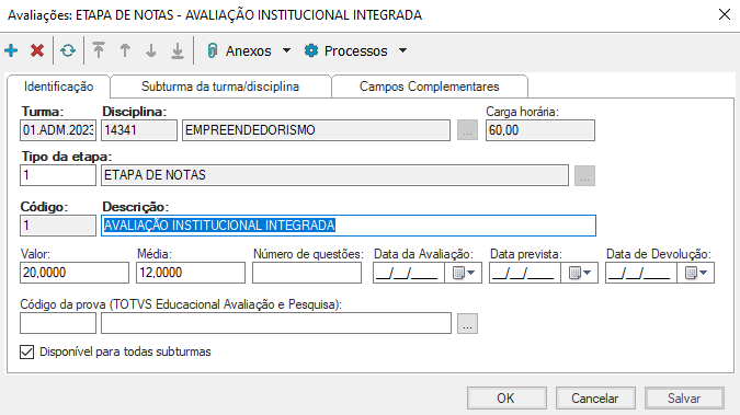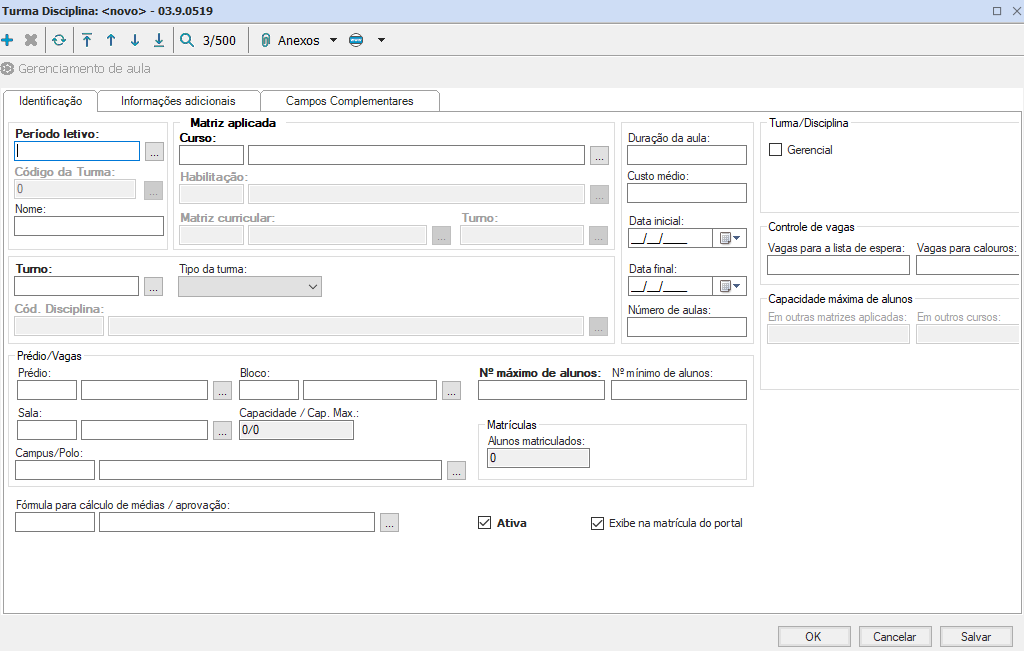 - Período letivo: Informe o período letivo da turma;