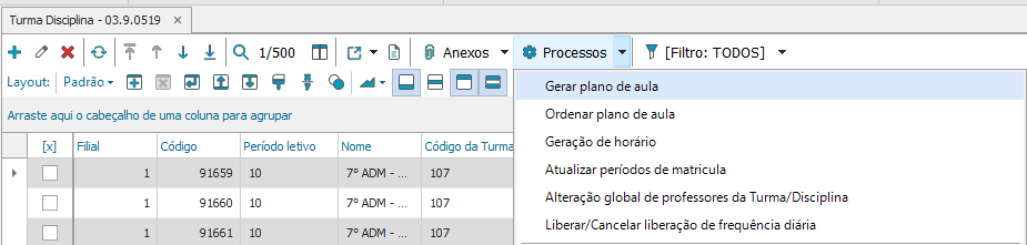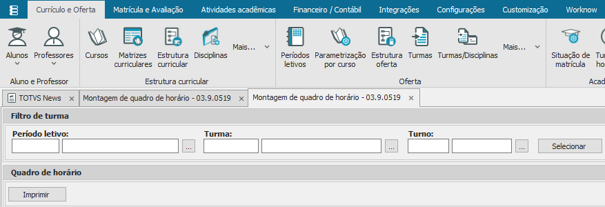 - Turma: Informe a turma na qual será realizada o processo do quadro de horário;