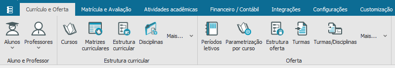 Os cadastros que serão apresentados abaixo estão localizados no “Módulo Educacional- Educacional” aba “Currículo e Oferta”