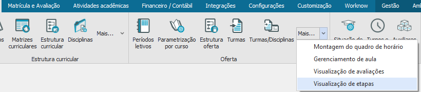 Para realizar a visualização das etapas, selecione na aba “Currículo e Oferta” a opção “Visualização de Etapas”