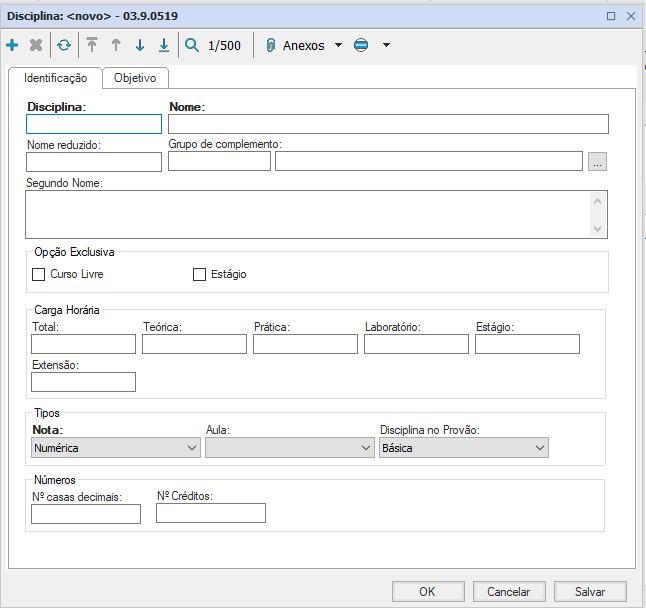 Carga Horária: informe a carga horária da disciplina que está sendo cadastrada;